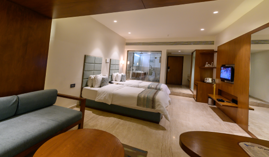 Spend you holidays or host your guests with an ultra luxurious accommodation at Sports club. We have luxury suites, super deluxe and executive deluxe rooms with full fledged amenities that give you a slice of luxury like royalty! Spend a relaxing time in our deluxe suites. To book now, write an e-mail to rooms@sportsclub-gujarat.com